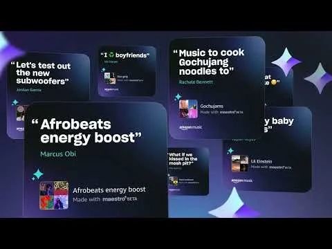 Maestro is an AI playlist creator, one of the first of its kind to launch within the industry, and one of Amazon’s first customer-facing AI experiences. Type in any prompt to create the perfect playlist for the mood or moment.